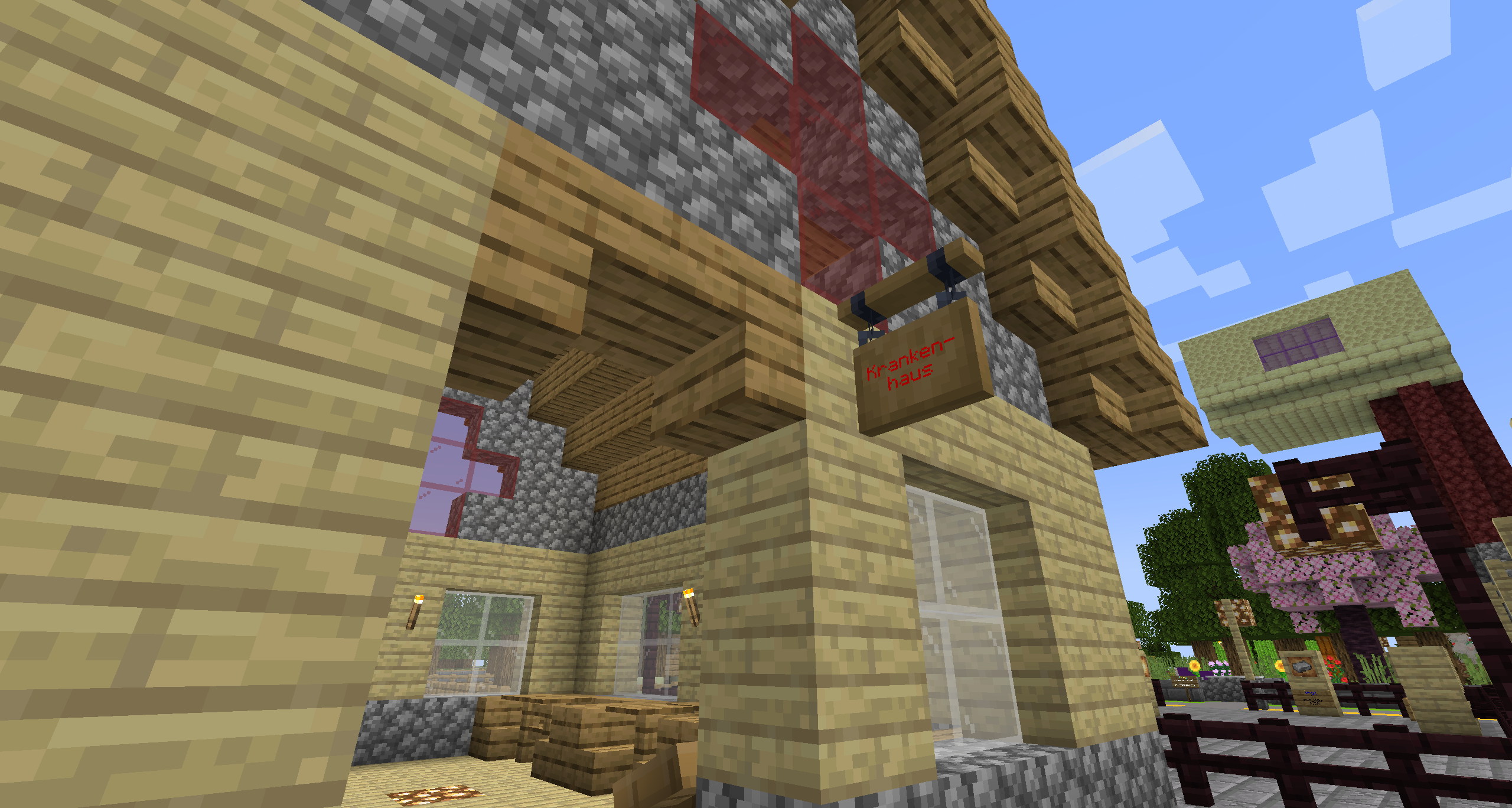 Im Krankenhaus werden die Spieler sofort geheilt und der Sättigungsbalken aufgefüllt.  - Heilgegenstände werden hier zum Kauf angeboten werden.