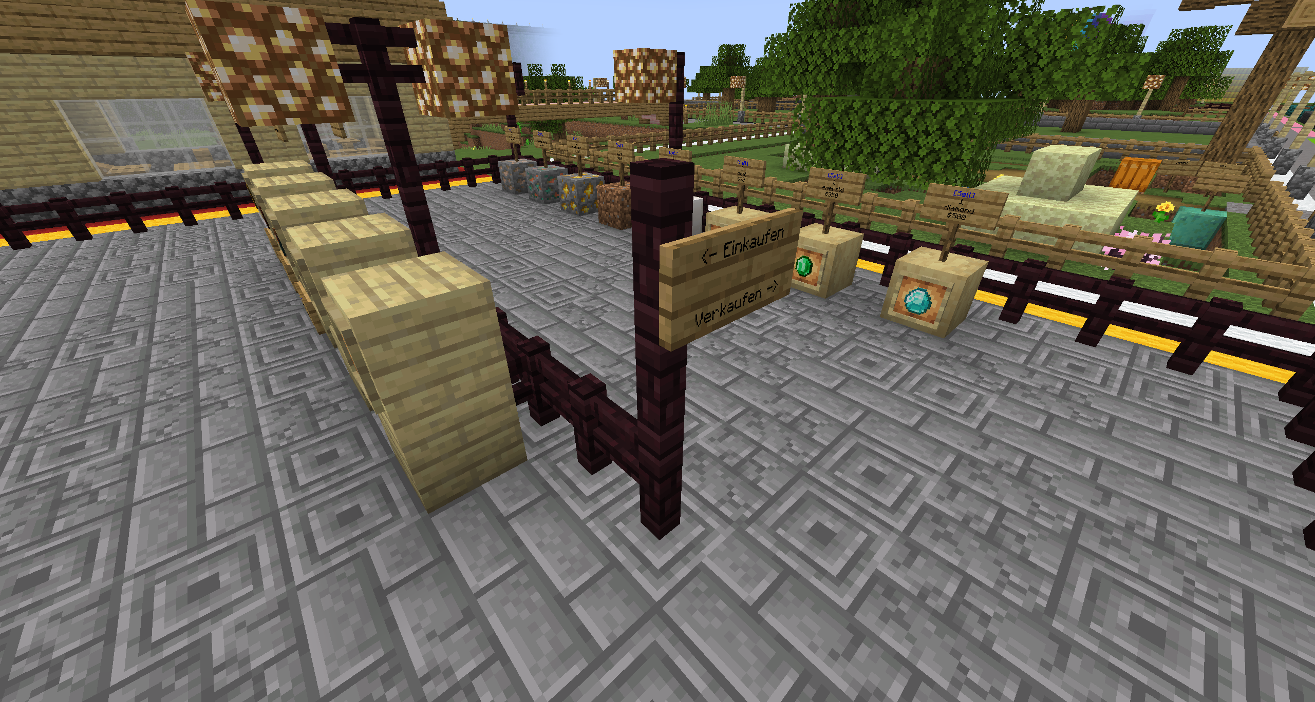 - Marktplatz: Verkaufen von Rohstoffen und Kaufen von Essen und Materialien